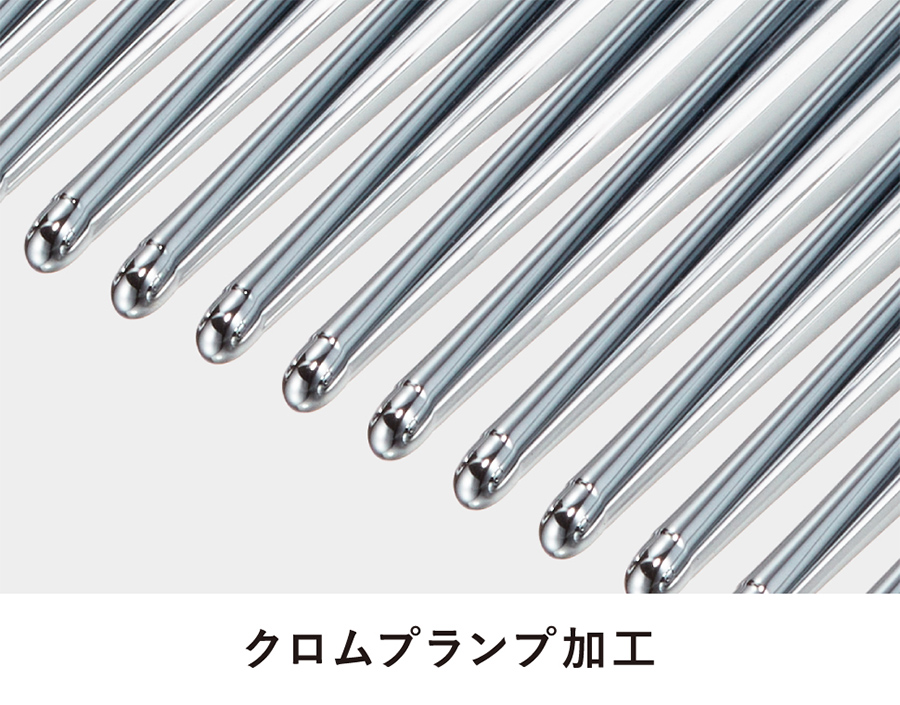 表面は特殊なクロムコーティングでぽってりと厚みを持たせ、なめらかに。髪との摩擦による負担を抑え、高い導電性で静電気を効率よく拡散させます。