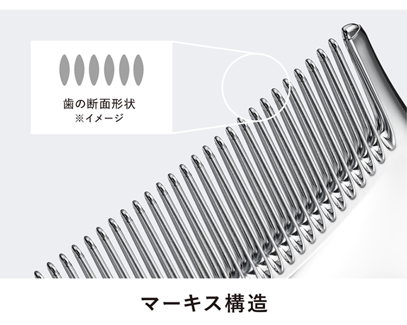 空力デザインに着目して生まれた歯の形状とコーティングで、髪をやさしく整え、ツヤとまとまりのある髪へ。