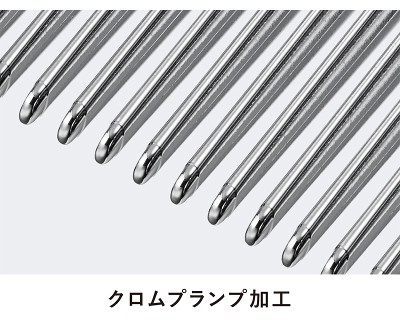 表面は特殊なクロムコーティングでぽってりと厚みを持たせ、なめらかに。髪との摩擦による負担を抑え、高い導電性で静電気を効率よく拡散させます。