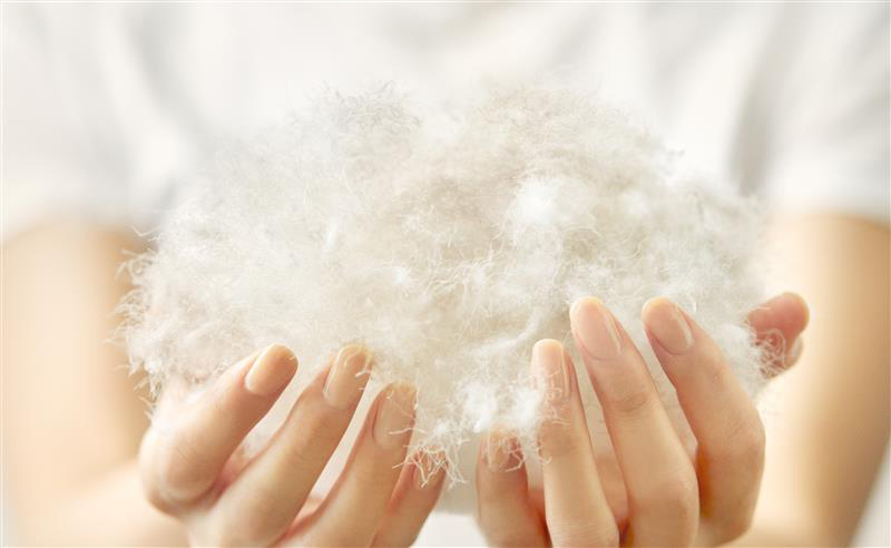 上質な羽毛の鍵は、その「洗浄」にあります。探し求め出会ったのは、三重・伊勢平野を流れる「超軟水」。1000年の時を経て、じっくりと不純物がろ過された細やかな水の粒子が隅々の汚れまで洗い流し、さらに150℃で高温殺菌洗浄。ほこりやアレルゲン、においを抑えた美しく清潔な羽毛へと仕上げ、赤ちゃんでも安心してお使いいただけます。高温殺菌洗浄で、美しく、清潔に