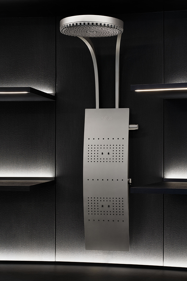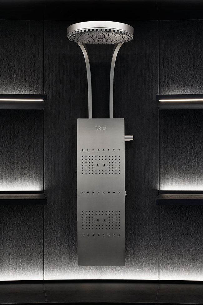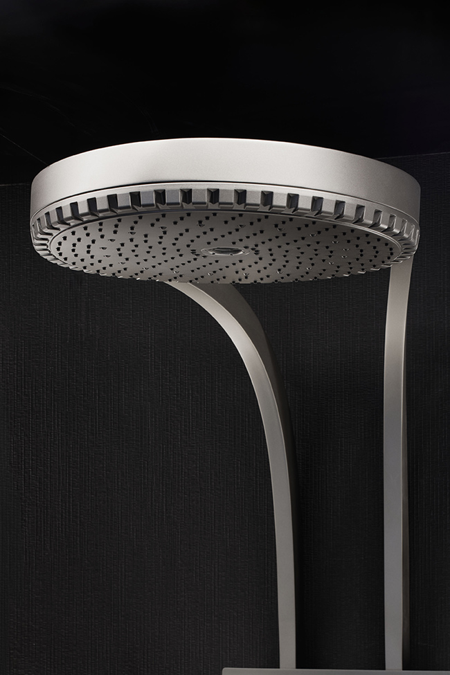 ファインバブルと水流を生み出す緻密な設計と壮大なスケールが融合することでかつてない入浴体験を叶え、重厚な存在感と洗練された造形が、空間に揺るぎない風格をもたらすオーバーヘッドシャワーです。
