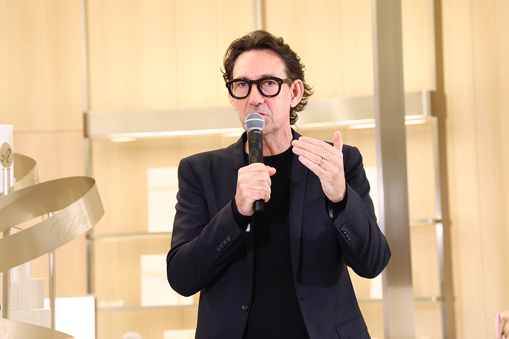 「ReFa GINZA」の設計・監修を担った世界的デザイナーのグエナエル・二コラ氏が登壇し、「訪れた人が元気になれる空間を目指した」と語りました。1階の店内中央に設置された象徴的なスフィアについては、「太陽をイメージし、そこからReFaの世界観が広がるようにデザインした」と説明。 エレガントでありながらもダイナミックな空間で、商品とお客様の新たな出会いを生む唯一無二のブランド体験をぜひお楽しみください。