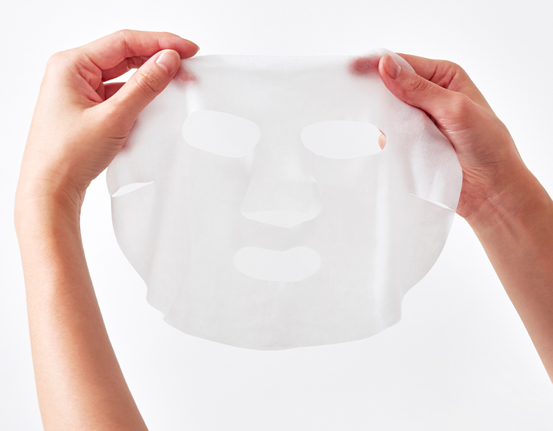 マスクシート素材には、肌にも環境にもやさしく配慮した、植物由来の3層構造の生分解性素材を使用した"貯水型"シートを採用しています。週に一度の集中保湿ケアで、乾燥でごわついたお肌も、うるおいに満ちたしっとりハリ肌に導きます。