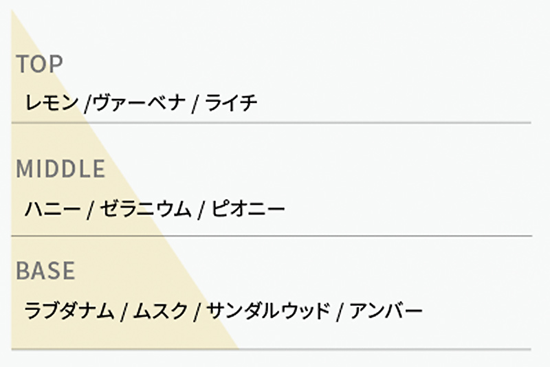 古代エジプト・ギリシャ時代から、賢者たちの美を支えてきたハチミツ。水分を引き寄せて抱き込む性質でうるおいのバリアを形成し、髪や肌を守ります。またポリフェノールやフラボノイドを含むため、髪のツヤとしなやかさをサポート。パサついたツヤのない印象の髪も、指どおりのよい、すとんとまとまる美髪へと導きます。