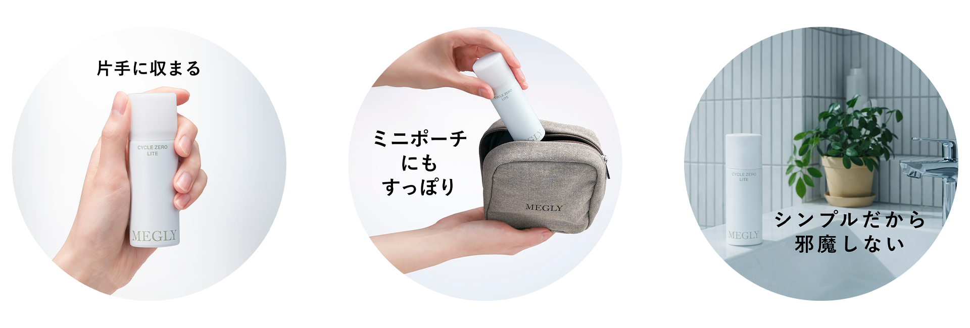 炭酸*²によってスキマ時間を味方にし、わずか1秒*¹で肌の土台ケアをサポート。これまでMEGLYを使ったことの無い方にも、新しい"土台ケア習慣"を提案。さらに、すでにMEGLYをお使いの方には、旅先へ持っていきやすいアイテムとして。