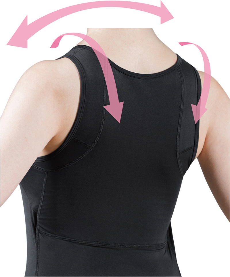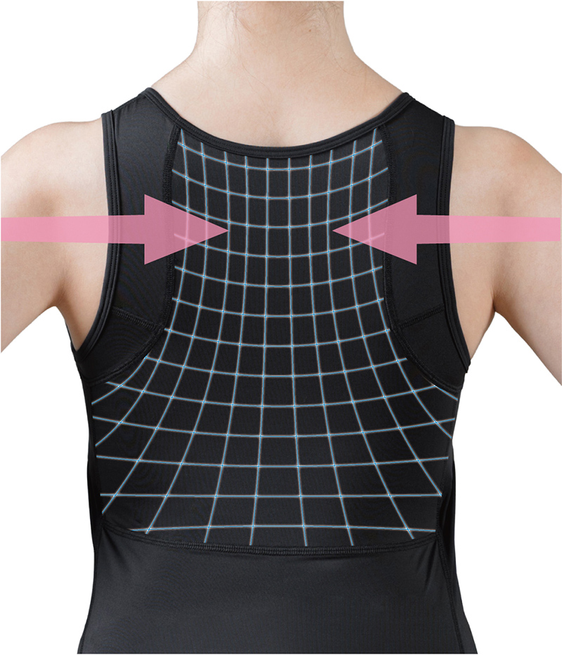 しかし発売当初より「下着との重ね着が難しい」や、「コーディネートの幅を広げたい」と、ノースリーブタイプへの要望も数多くいただいて参りました。そんな中、女性開発者が「自身が本当に着たいアイテムを作りたい」とお客様の声にお応えする形で1枚で着用でき、かつ本格的な姿勢ケアができる本商品が誕生しました。