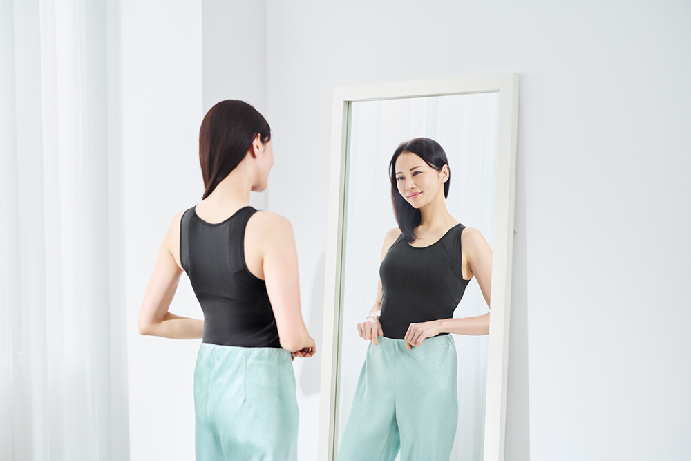 従来の半袖タイプに加え、ノースリーブタイプをラインナップすることで、本格姿勢をケアをしながら、幅広いコーディネートを楽しんでいただけるようになります。