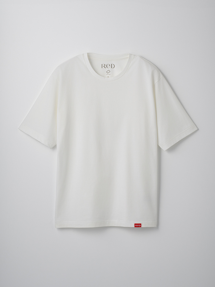 綿を混紡したやさしい肌ざわりのアイテムです。上質な光沢で毛玉もできにくく、お手入れのしやすさもポイントです。プレーンなデザインにさりげないReDのロゴタグをあしらいました。