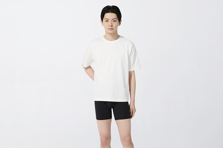 定番アイテムのロングボクサーパンツに加えてスタンダードな丈のボクサーパンツをラインアップしました。さらっと心地よく着られる吸水速乾性で汗をかいても乾きやすく、ムレにくいのが特長です。
