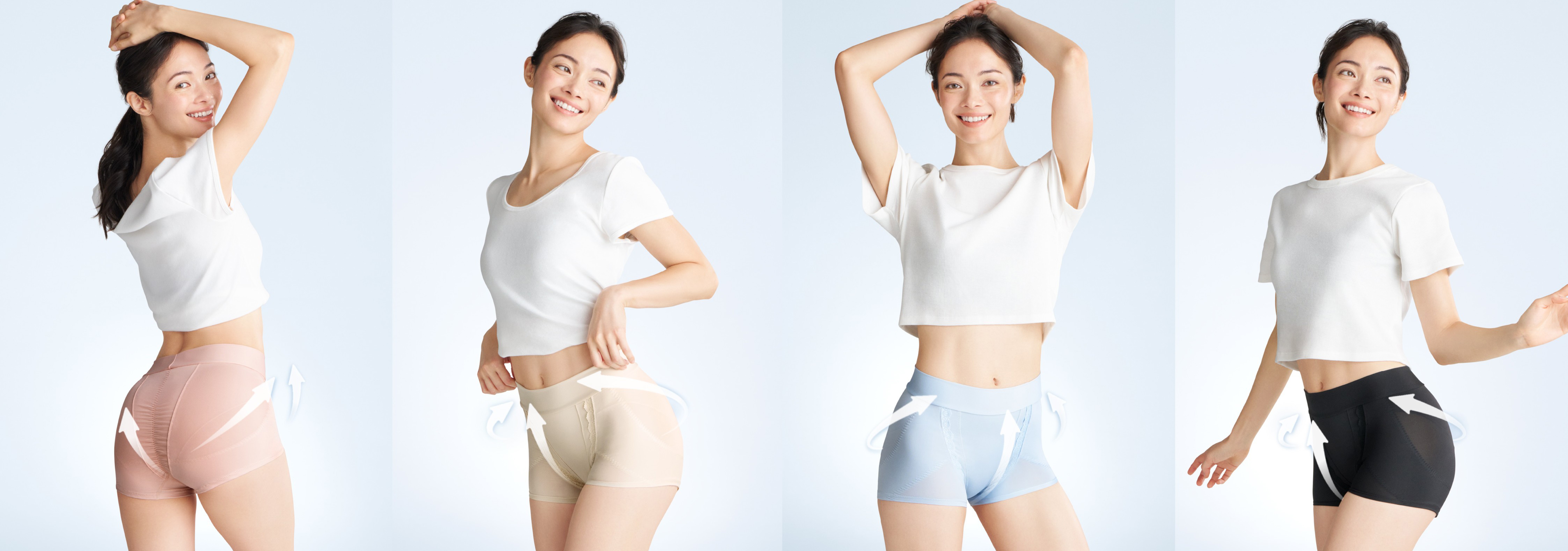 こうした女性にとって重要課題ともいえる骨盤周辺の悩みをサポートできるよう、下着として日常に取り入れられるケア方法が、「骨盤底筋ショーツ」です。