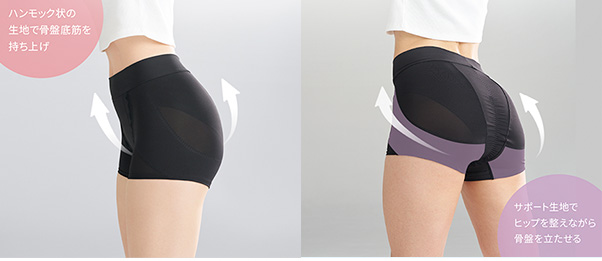 ■ リフトアップ構造によってはくことで骨盤底筋をサポート