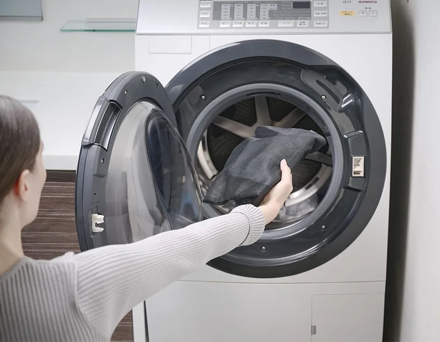 洗濯ネットに入れて洗濯機で洗うことが出来ます。型崩れしにくくお手入れも簡単で、日常的に気兼ねなく使用可能です。