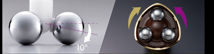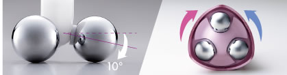 - 肌をより深くとらえるため垂直から10°傾斜をつけた3D設計。 吸い上げて、効果的にもみ出す動きを実現。
